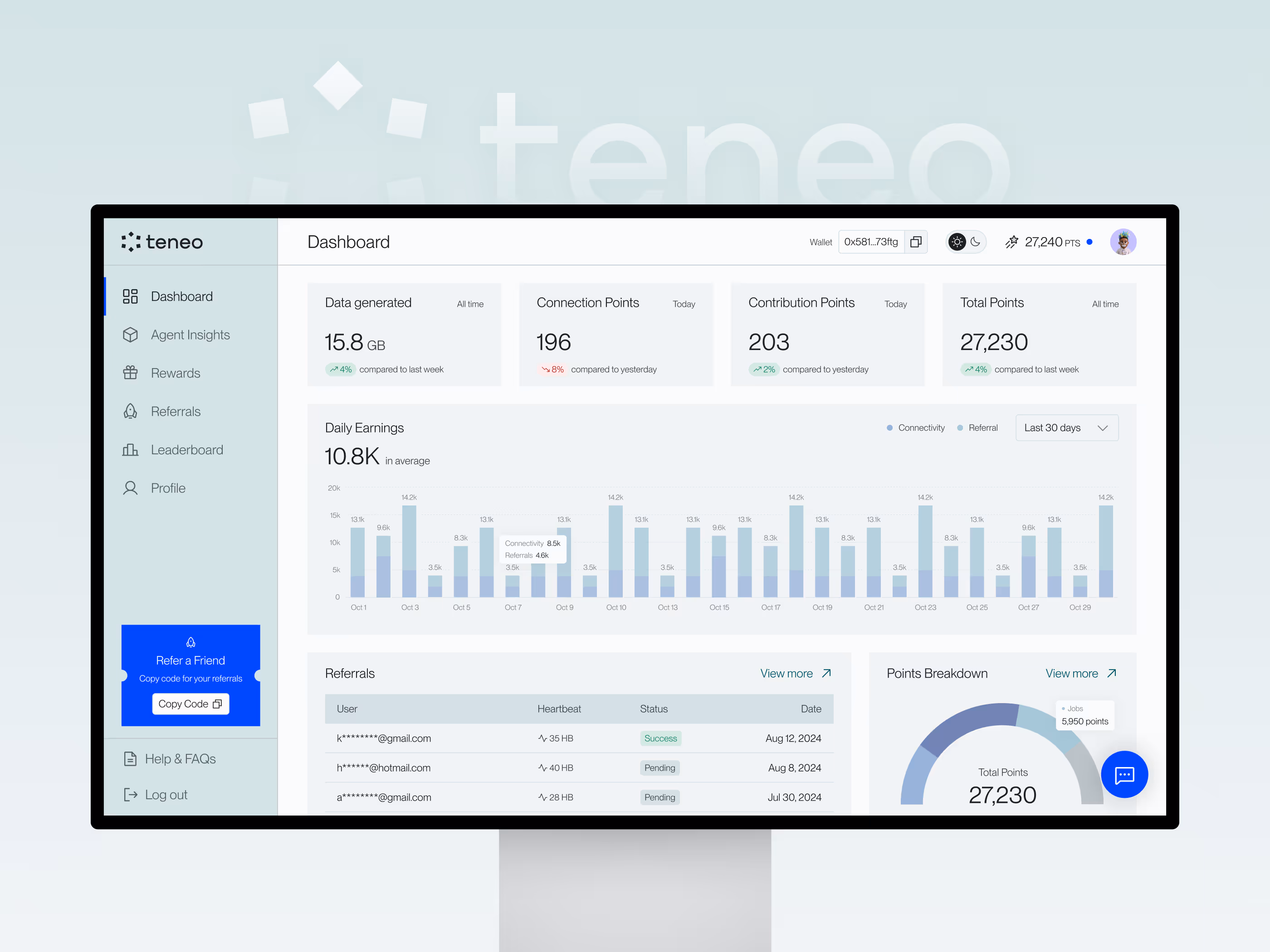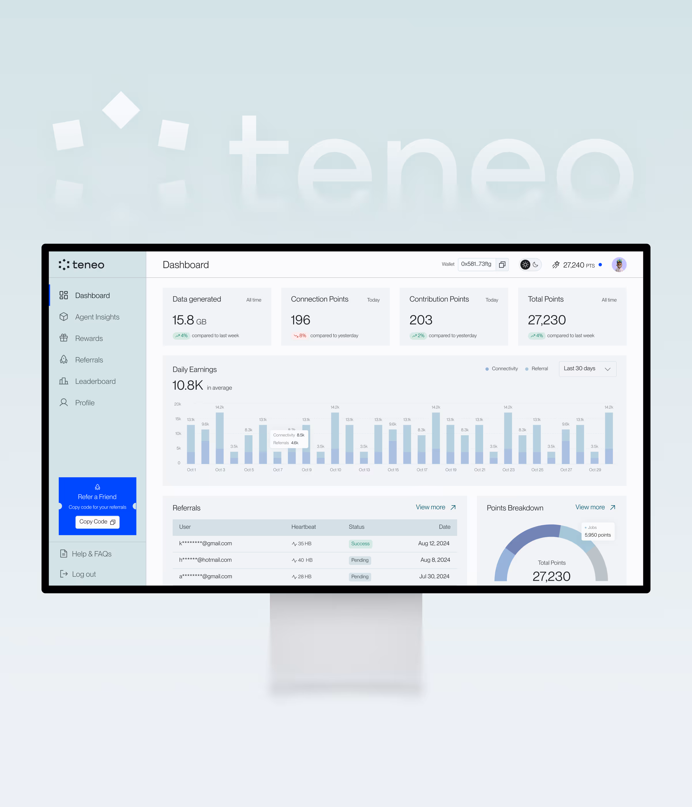 Teneo Protocol Dashboard is your all-in-one platform to manage activities, track rewards, and access essential tools within the Teneo Protocol ecosystem.