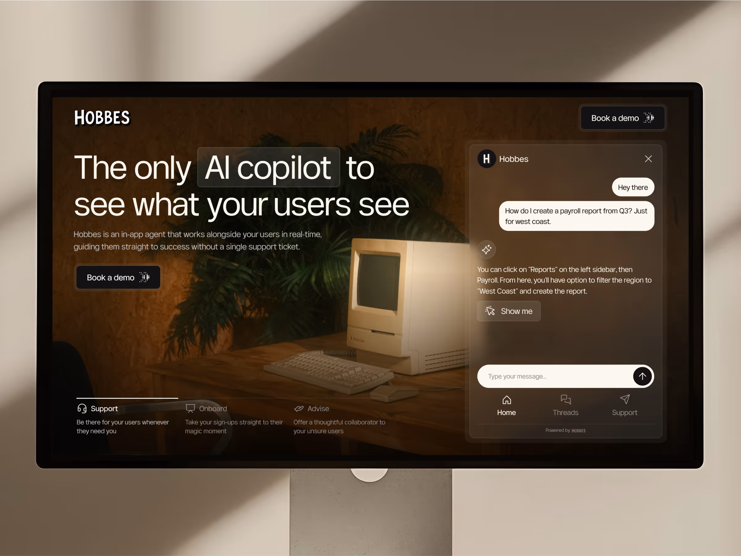 Hobbes is the first Digital Hire that onboards your users live by seeing what they see, personalizing their adoption experience to drive first session activation.