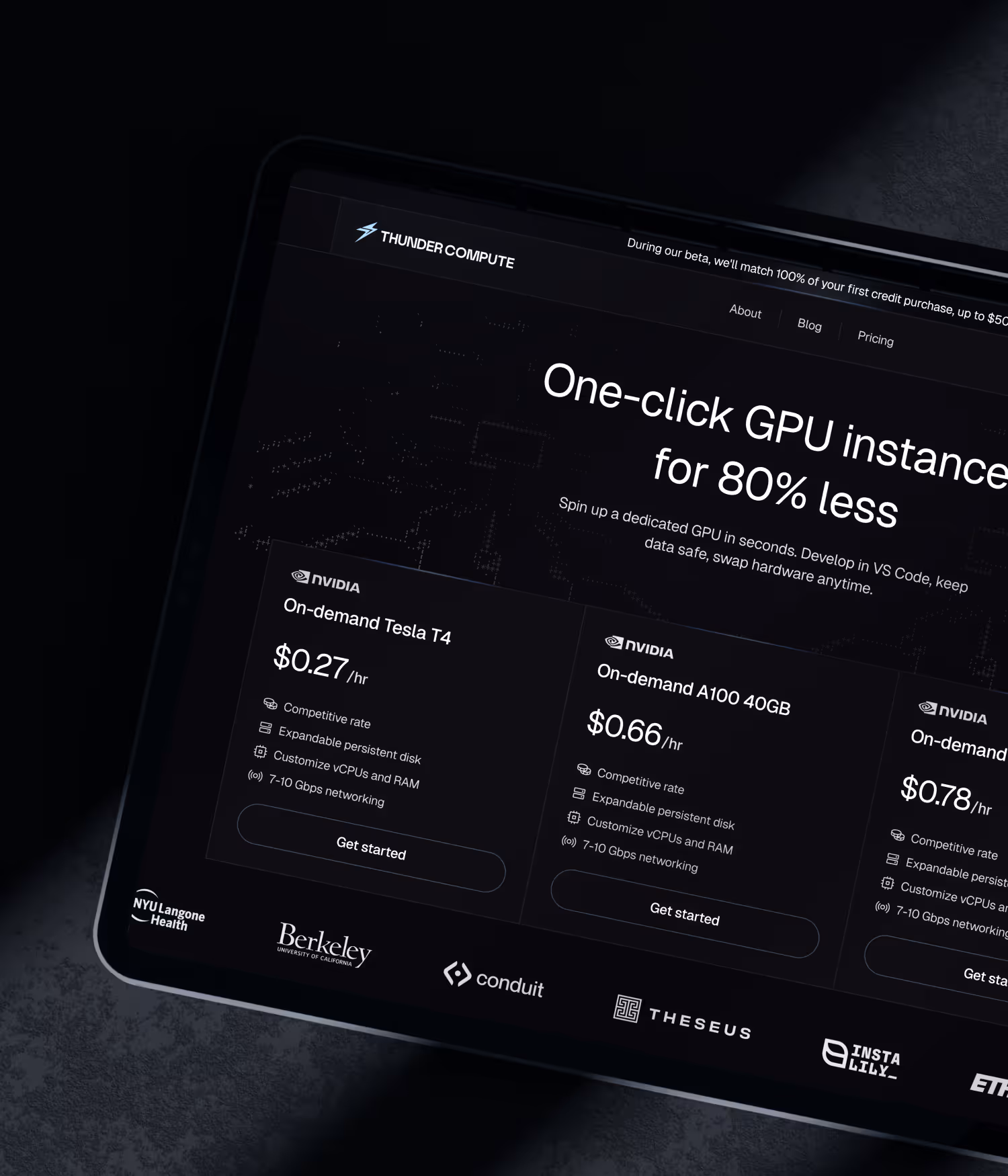 Thunder Compute provides instant, one-click GPU instances with industry-leading pricing.